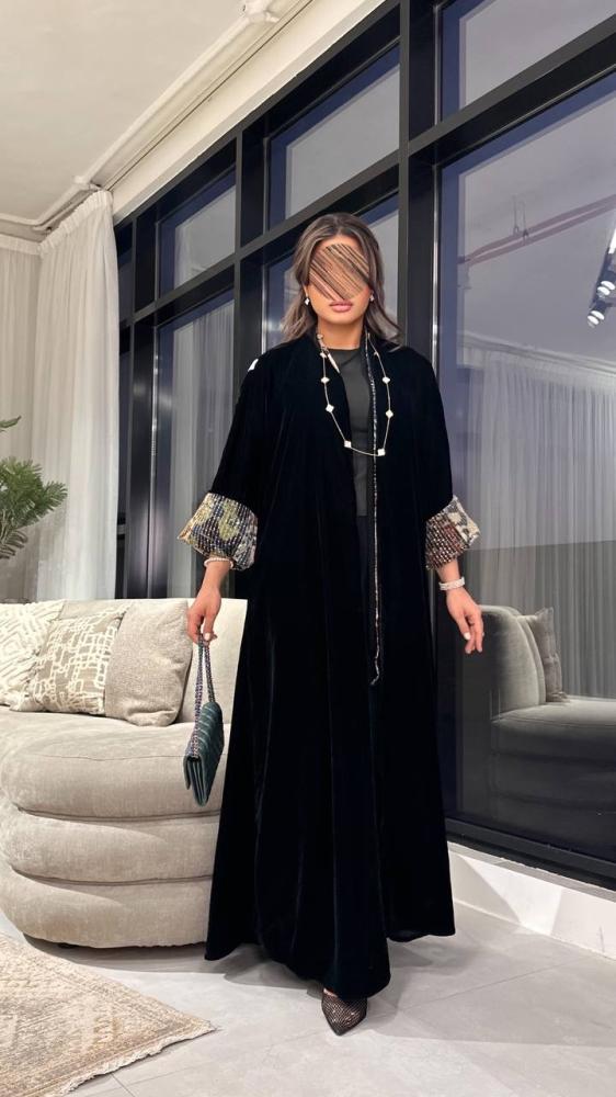 تفاصيل العباية: عبايه كم مربعه بقلبه ب قماش مطرز هندي