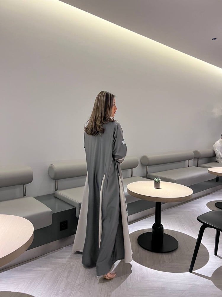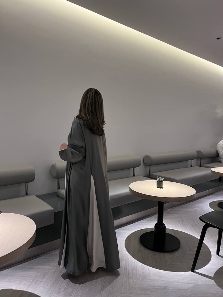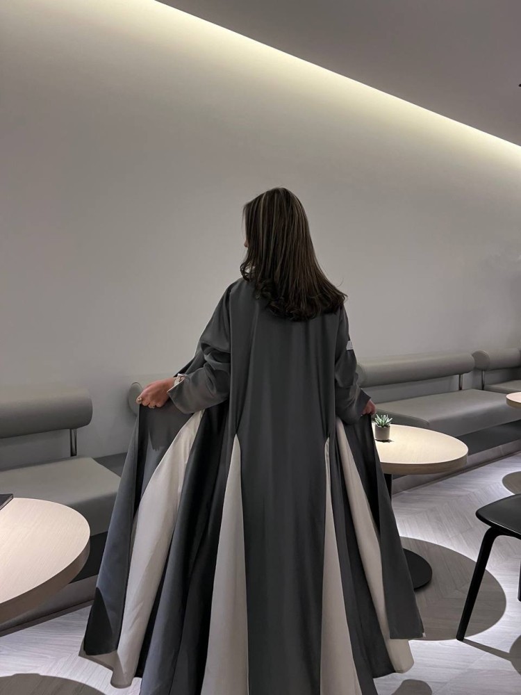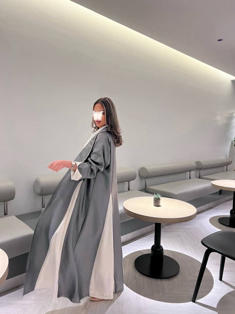 تفاصيل العباية: لياقه من الامام وقلبه من الأكمام وفتحات بلون مختلف