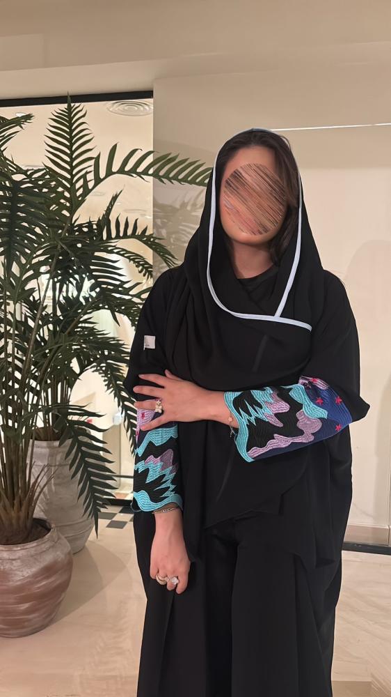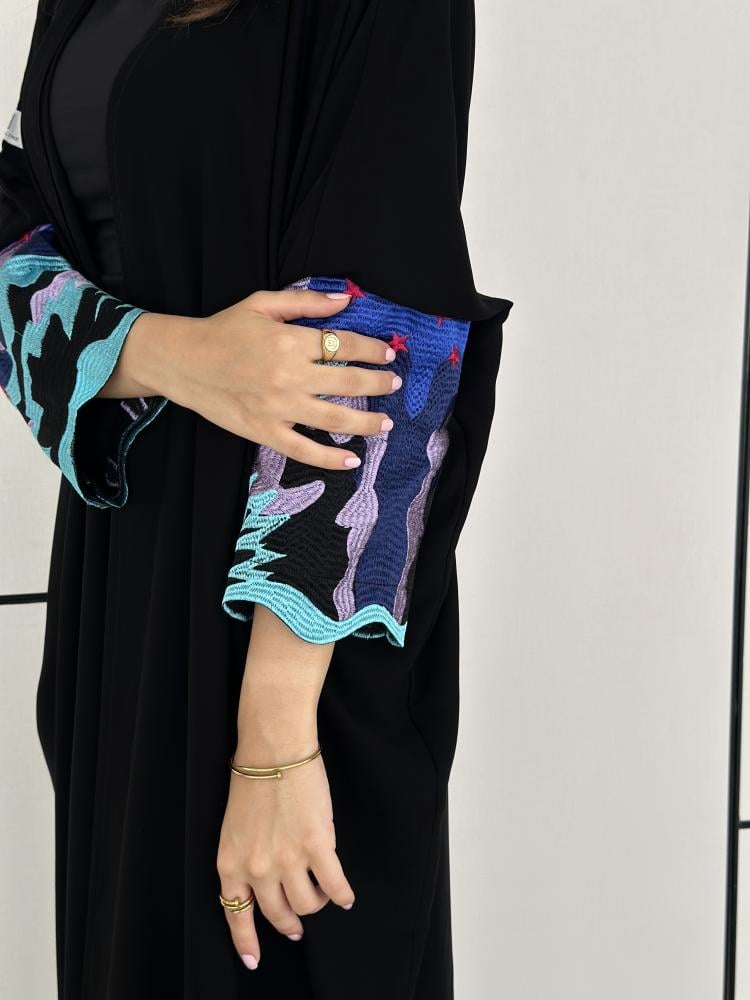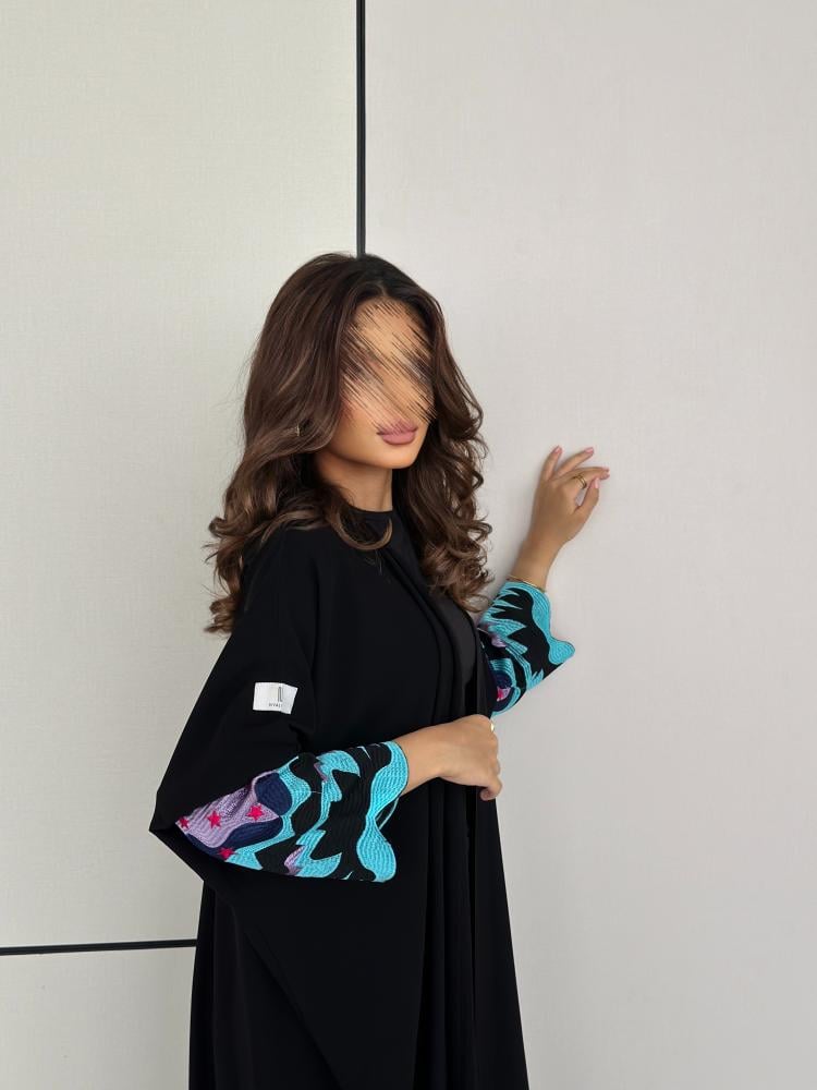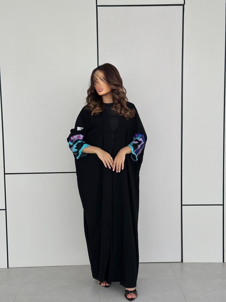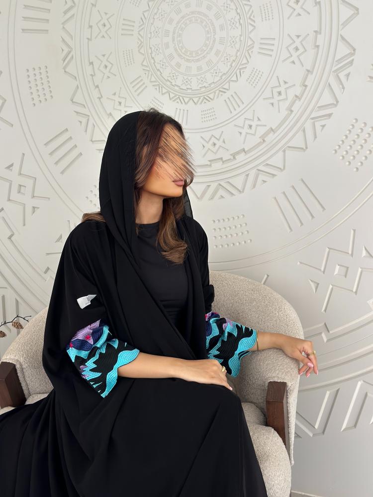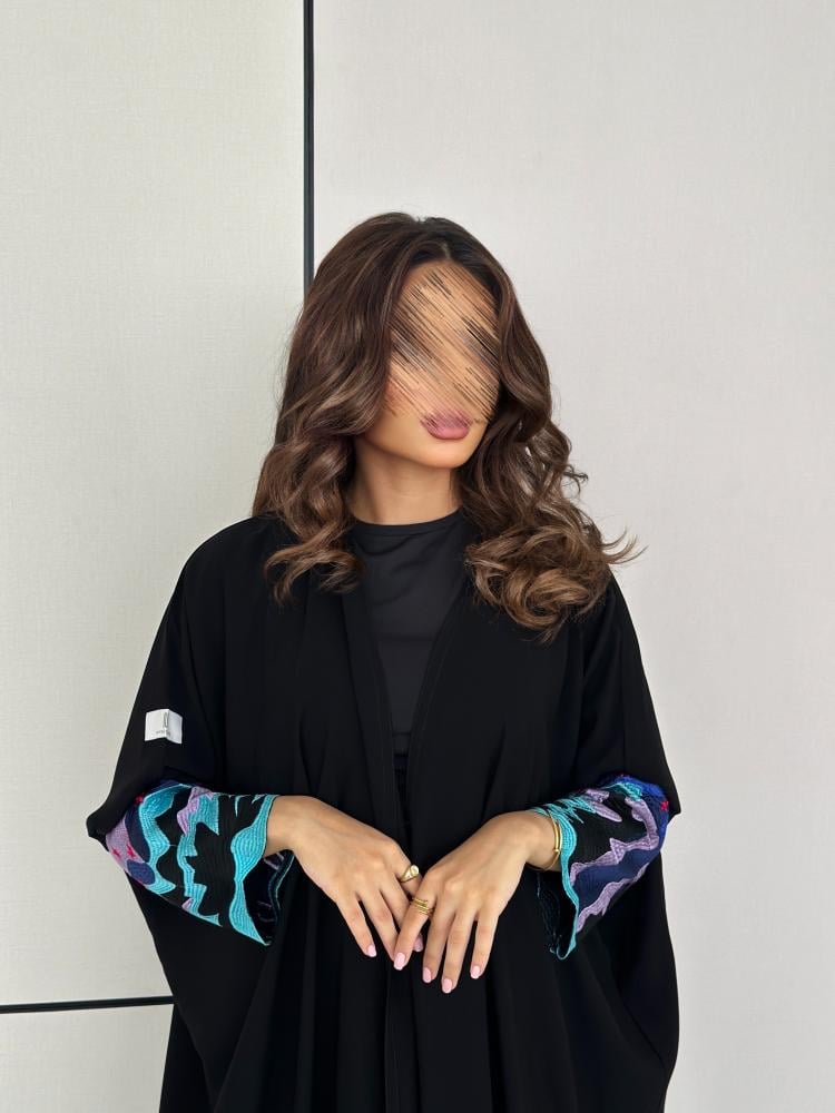 تفاصيل العباية: عبايه نصف بشت مع قماش مطرز من الكم